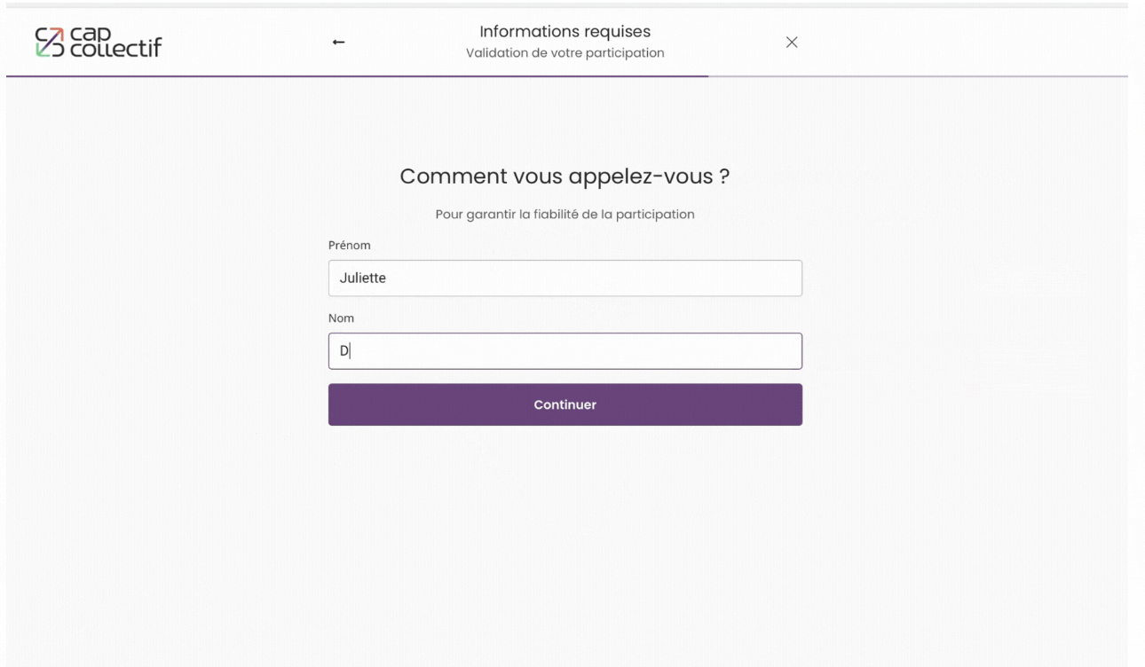 Il est possible que l'administrateur ait besoin d'informations complémentaires, appelées "informations requises". Dans ce cas, ces informations vous seront demandées pour valider votre participation.